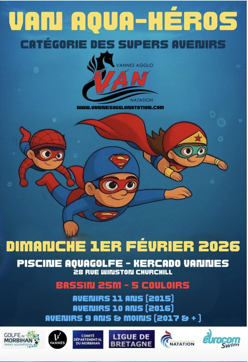 Van Aqua Héros est le meeting Avenir de Vannes Agglo Natation sur le thème des Super-Héros
